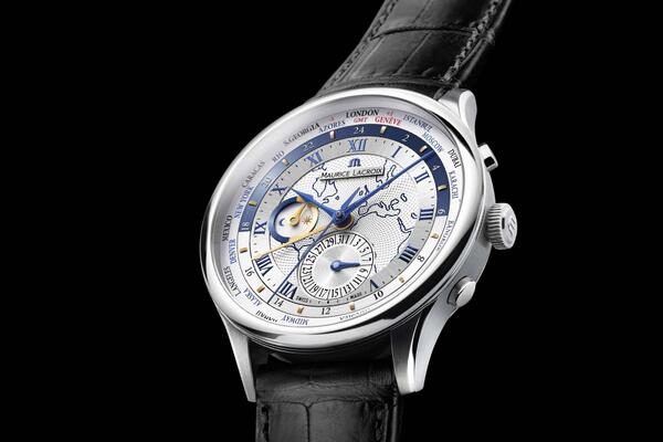 Maurice Lacroix Wordtimer, white dial with leather straps